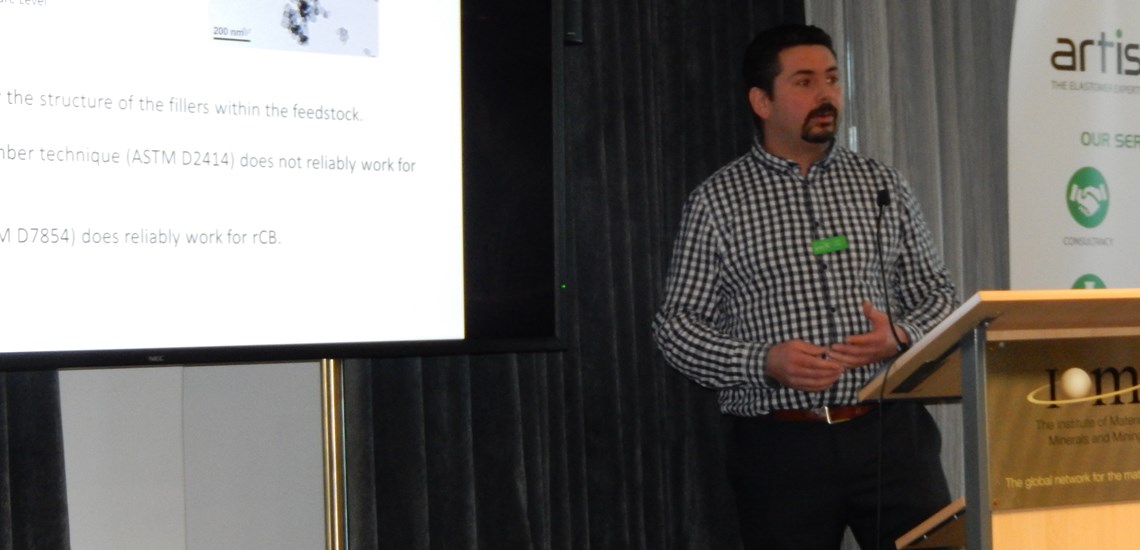 The afternoon was largely focussed on Pyrolysis, with an overview from Martin Von Wolfersdorff and a technical review of the rCB product development by Dr. Chris Norris. Pieter Ter Haar from Pyrolyx discussed carbonaceous residue on Carbon Black mixtures in rCB, and there was a presentation from Thomas Greaves of Haydale looking at Plasma functionalisation of rCB.
